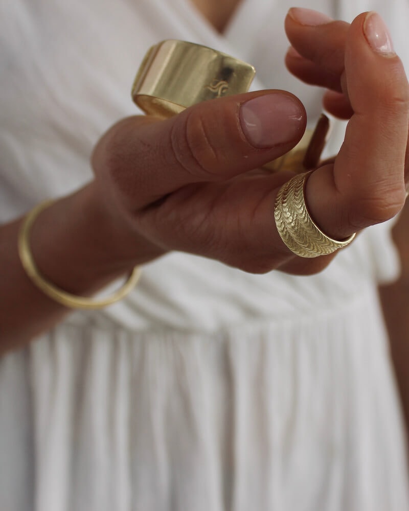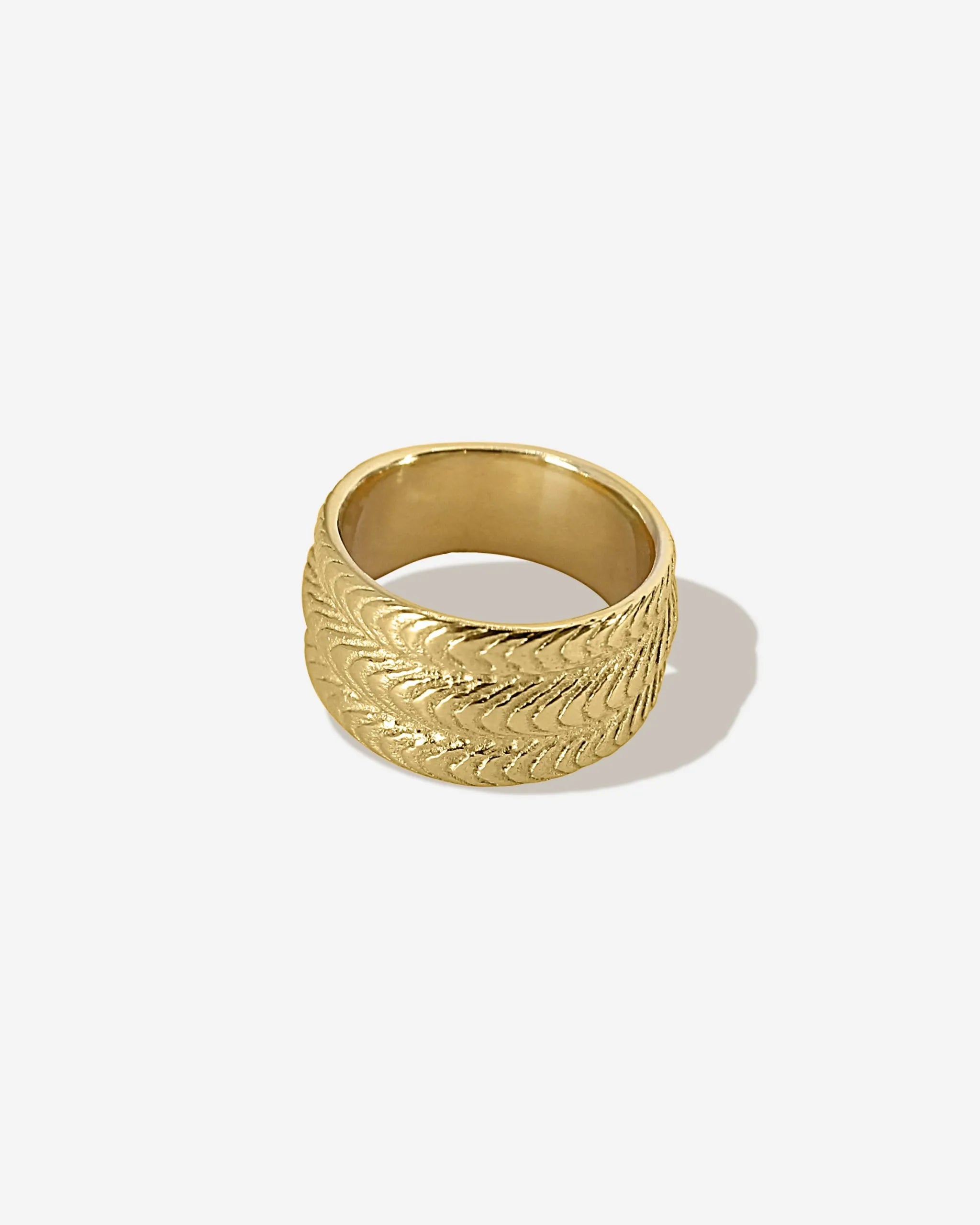 The splendor of antiquity is reflected in this Roman-style, triple-curved ring. Particularly soft but with a pleasant weight, the Roma ring is wonderful to wear on its own or as an element in ring stacking; in combination with the Sisal ring, for example, it is an impressive addition.